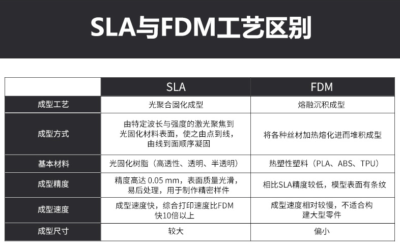 對于3D打印機來說,最常見的機型就是FDM和SLA兩種類型,但是相較于FDM 3D打印機,一般來說更貴的工業級SLA 3D打印機無論是從打印速度還是成型精度都更具有優勢。